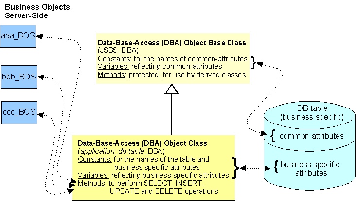is a scheme how several Business Objects might use one DBA Object.