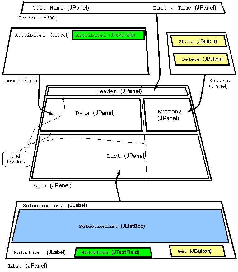GUI-elements (JButtons, JLabels, JTextFields, JComboBoxes, etc).