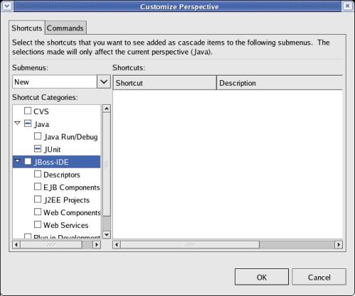 the plugin was installed, 'Jboss-IDE' is one of the 'Shortcut