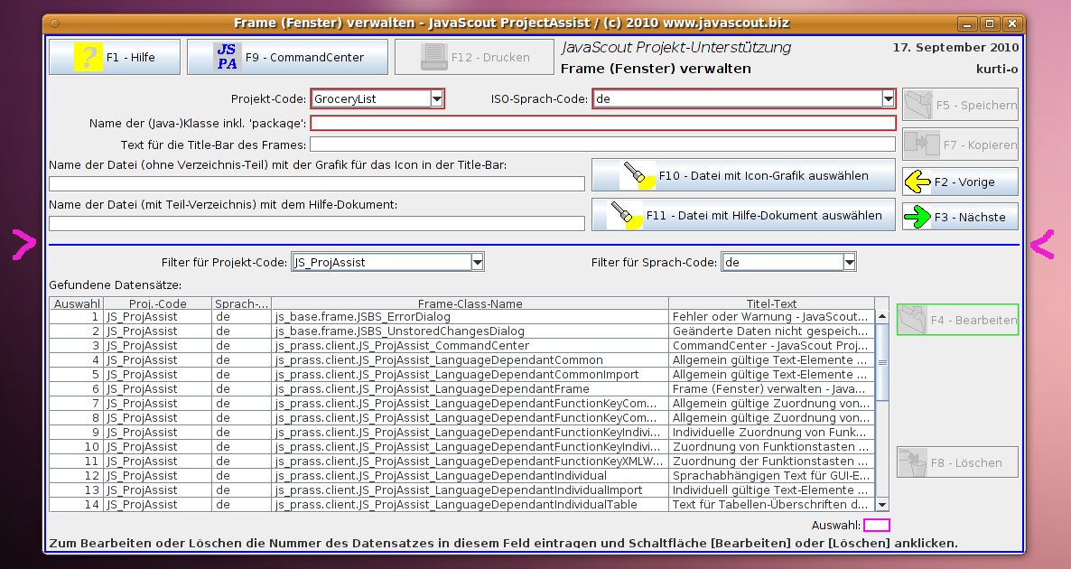 Muster-Code für die Klassen eines Task-Frames > Muster-Code für die Klasse für das Frame (GUI) |