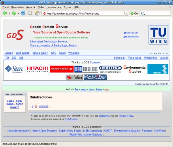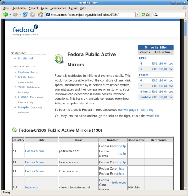 Verzeichnis aller Server, die Images mit Fedora-Linux bereitstellen