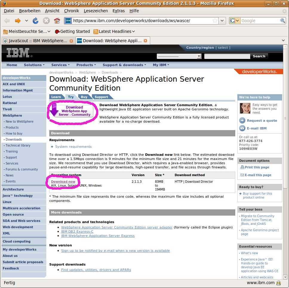 WebSphere Java-Application-Server (JAS) – Community Edition;