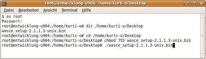 Starten von WAS-CE erfolgt über eine Kommandozeile. Sofern