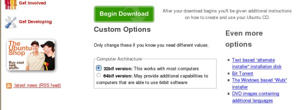 Beachten Sie bitte, dass Sie die richtige Version für den Prozessor des Computers auf dem Ubuntu Linux installiert werden soll auswählen.