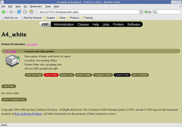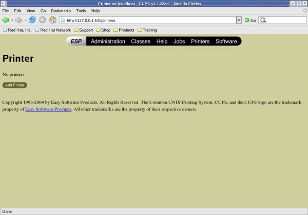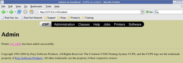 A CUPS server running on a machine within the Local Area Network and configured as described in section Installation and configuration of the CUPS server.