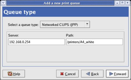 the next window, the kind of 'queue type' (Networked CUPS (IPP) in