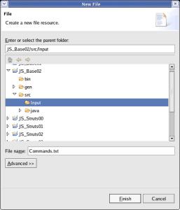 the window 'New File' enter the 'File name': Commands.txt