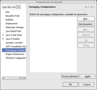 the left area select 'Packaging Configurations' and click the button