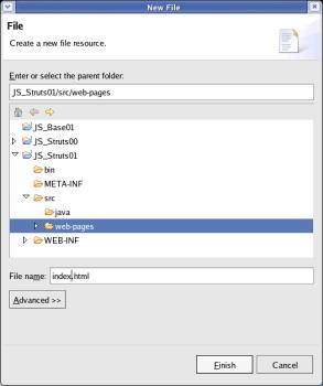 folder 'web-pages' of the project 'JS_Struts01' and click