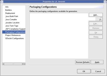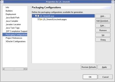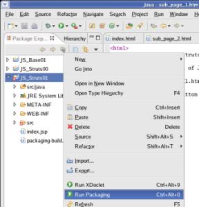 generated file (JS_Struts01.war) is now visible in the 'Package