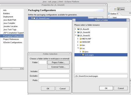 This document describes the creation of 3 HTML-files in different sub-directories using the Struts-framework (see JS_Struts00) under Eclipse, packing them into a WAR and deploying the WAR-file to JBoss-Java-Application-Server.