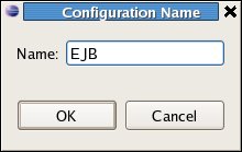 Im darauf hin erscheinenden Fenster (Configuration Name) muß ein frei gewählter Name für die XDoclet-Konfiguration erfaßt werden. Da das XDoclet Dateien für das EJB erzeugen wird, wurde als 'Name' EJB verwendet. Durch Klicken der Schaltfläche [ OK ] wird der Name gültig und das Fenster geschlossen. |