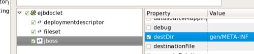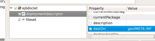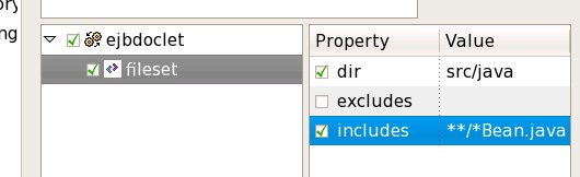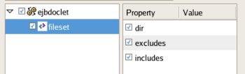 'fileset' angezeigt. Die Werte der einzelnen Properties werden auf die selbe Weise erfaßt wie bereits unter Generelle XDoclet-Parameter für EJB beschrieben. |