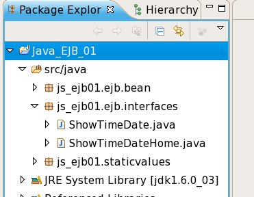 Als weiter Indikation der erfolgreichen Ausführung ist ein neues 'Package' (js_ejb01.ejb.interfaces) mit zwei Dateien zu sehen. |
