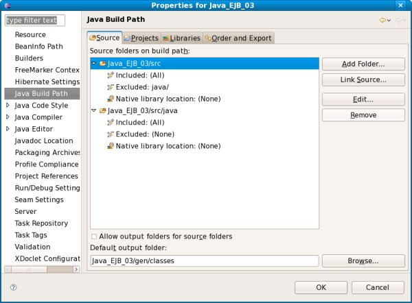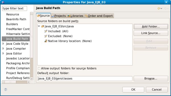 Detaillierte Anleitungen inklusive Abbildungen der Fenster finden Sie im Dokument Einfache Session Bean (Java_EJB_01) – Einrichten des Projects>Verzeichnis für Quell-Code und kompilierte Java-Klassen festlegen . |