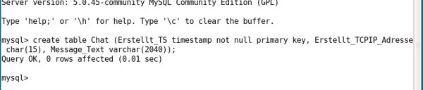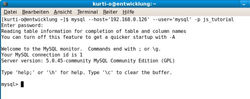 Sie die neue Datenbank mit folgendem SQL-Kommando: Bitte beachten Sie, daß Sie das SQL-Kommando in einer Zeile oder über mehrere Zeilen verteilt schreiben können aber mit einem Strichpunkt (;) abschließen müssen ! Beenden Sie den Datenbank-Monitor durch das Kommando quit und schließen Sie das Terminal-Fenster durch das Kommando exit. |