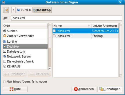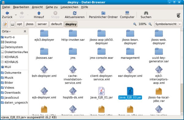 Diese Datei wird unter gleichem Dateinamen in das Verzeichnis '/opt/jboss/server/default/deploy' kopiert.