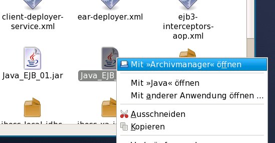 JAR- (Java-ARchive-) Datei mit den Klassen für die Verbindung zum MySQL-Datenbanksystem im passenden Verzeichnis von JBoss installiert; siehe MySQL Datenbank für die Verwendung mit Java-Programmen einrichten > Java-Archiv (JAR) Datei mit dem 'Connector' zu MySQL – Installation für JBoss JAS.