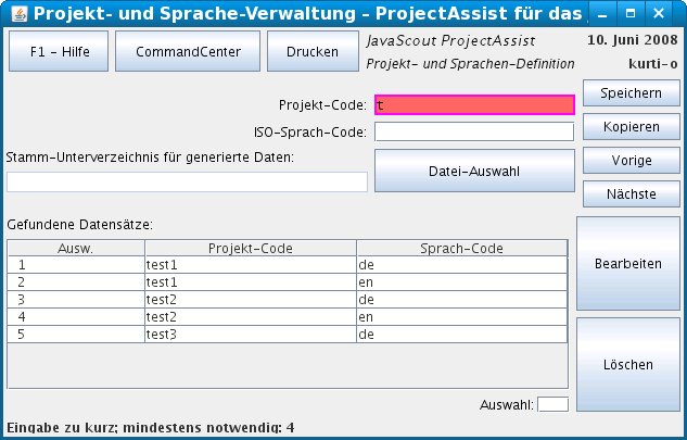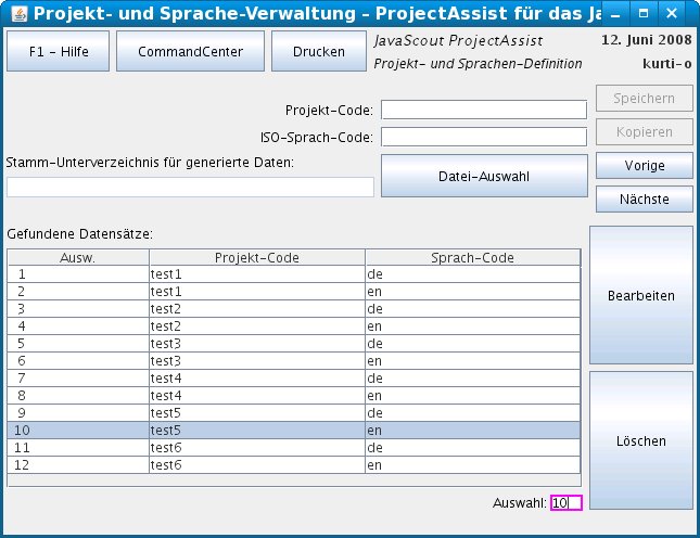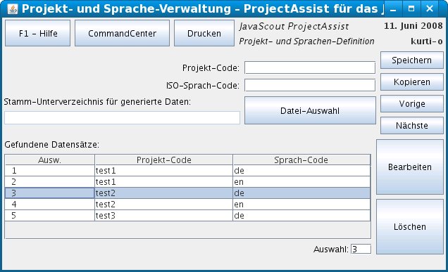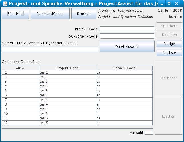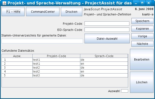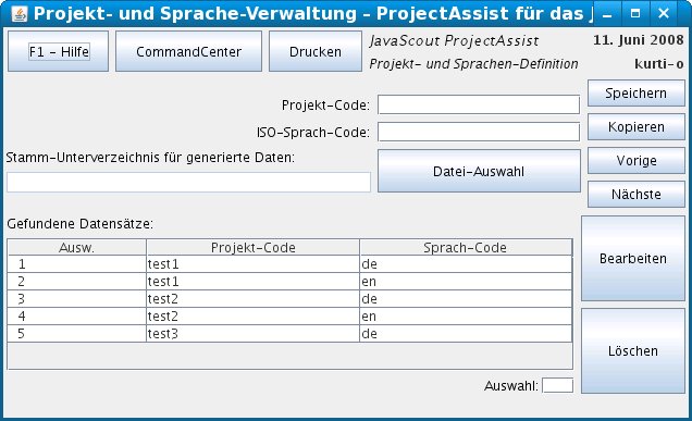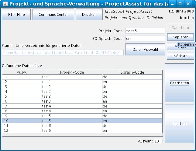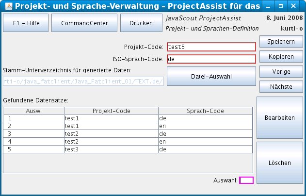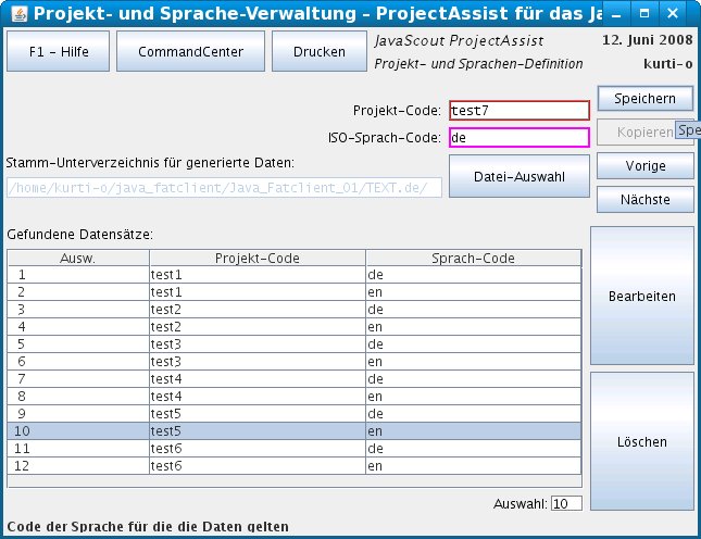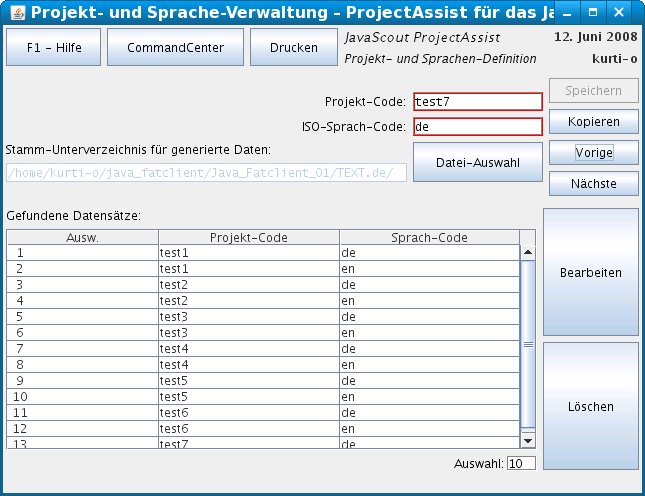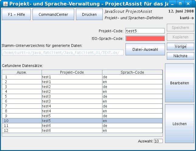 JavaScout ProjectAssist, Start-Frame Grundlagen (Java_Fatclient_01) –