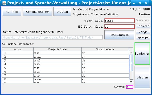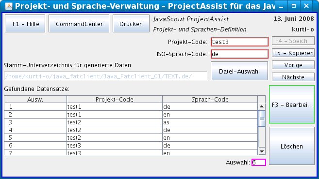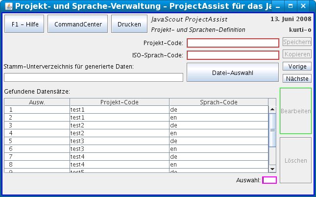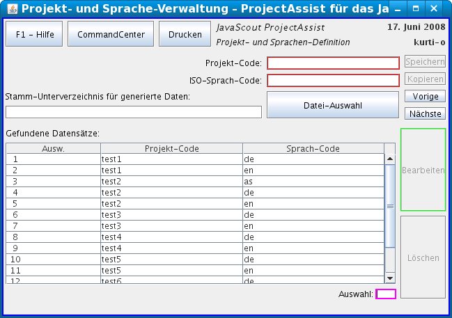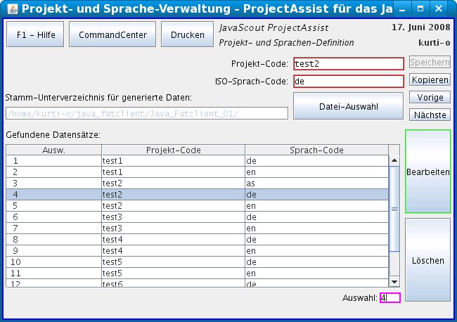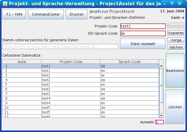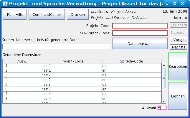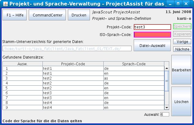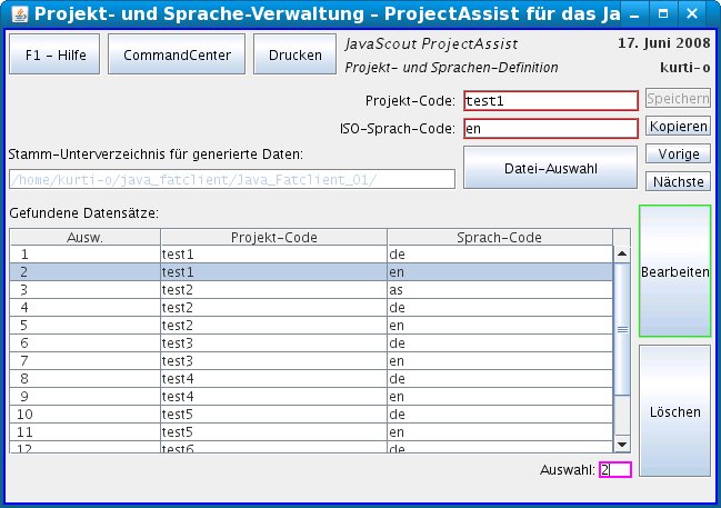 zum Anzeigen der aktuell gültigen Projekt-/Sprach-Kombinationen