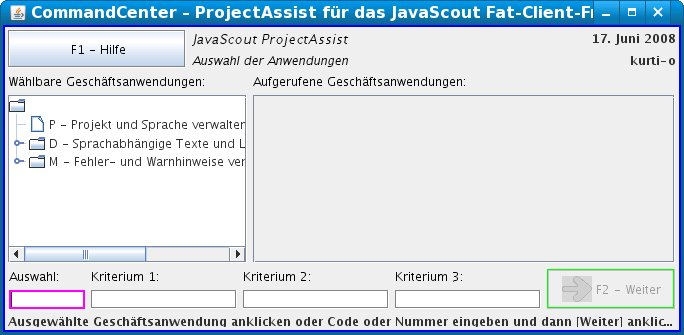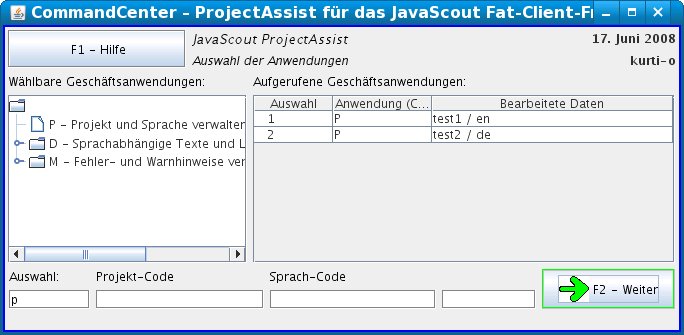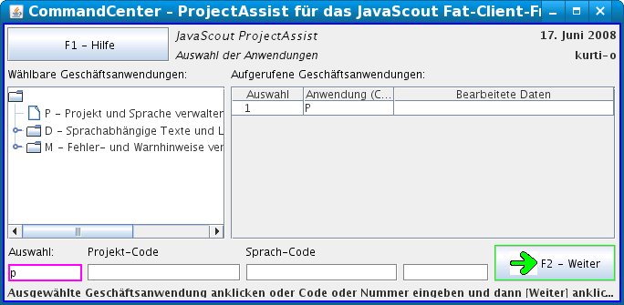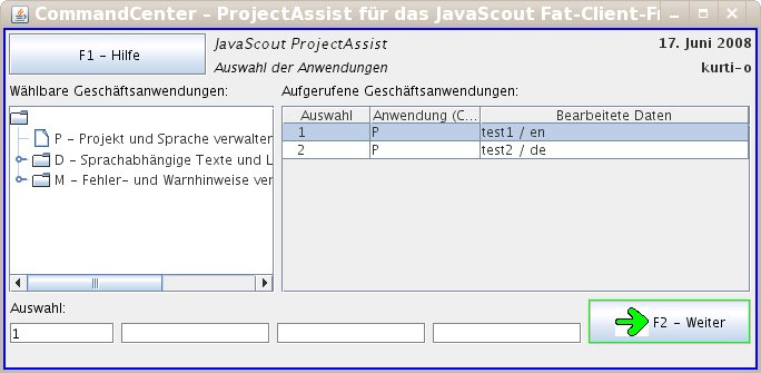Das Teilprogramm für den Geschäftsfall (Task) wird in die Liste 'Aufgerufene Geschäftsanwendungen' im 'CommandCenter' eingetragen.