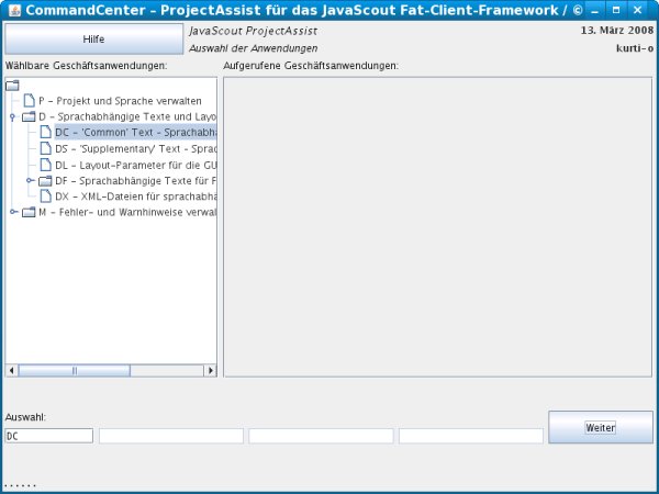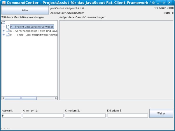 ProjectAssist, Start-Frame Finalisierung (Java_Fatclient_01) –