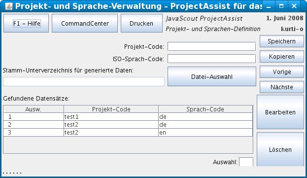 (Projekt/Sprach-Kombinationen) in einer Liste angezeigt.