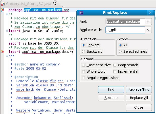 Schritt desTutorials für die Entwicklung von Heavyweight-Client Anwendungen in dem die Implementierung der Generellen Klasse für das BO vorgestellt wird. |