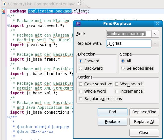 Platzhalter durch Bezeichnungen des eigentlichen Projektes zu