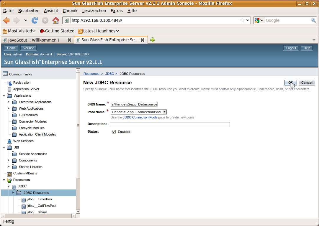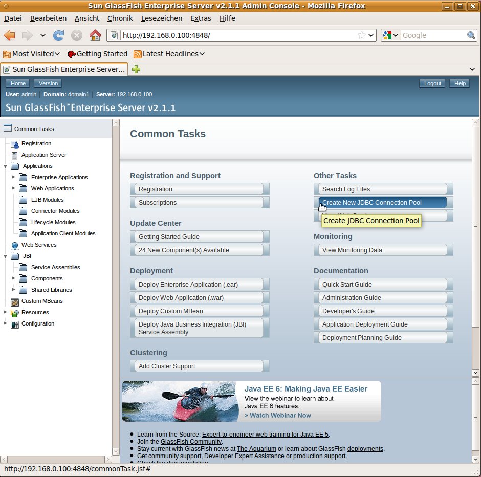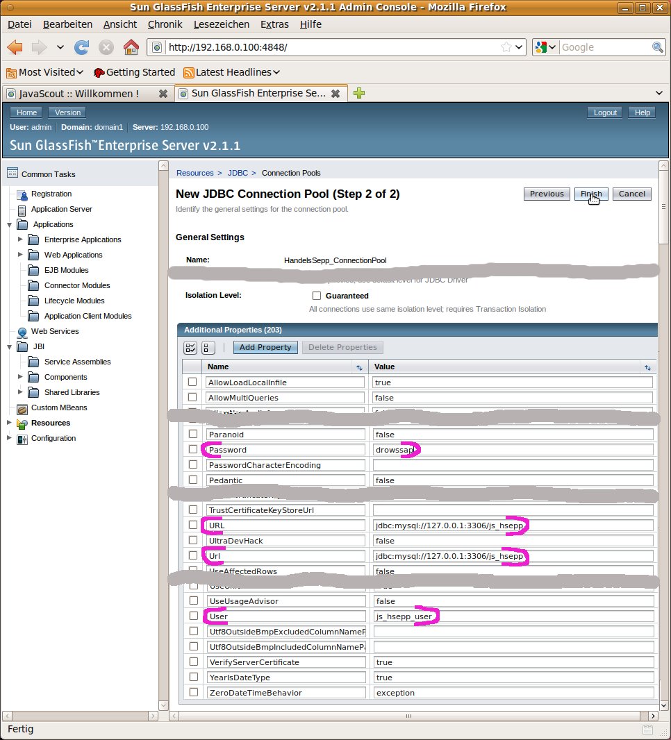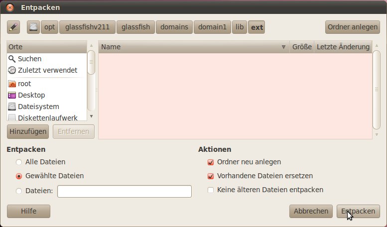 Installationsverzeichnis von Glassfish geschrieben werden.