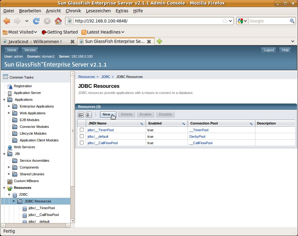 Datasource festlegen (JNDI-Name der Verbindung zur Datenbank)