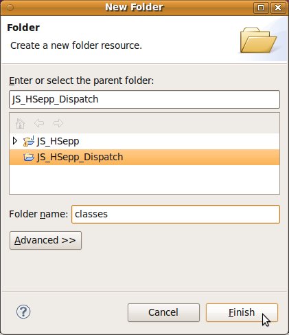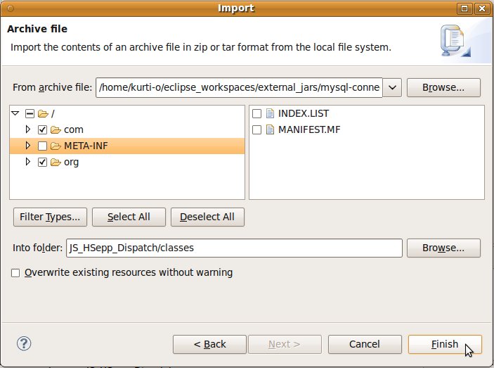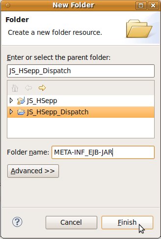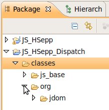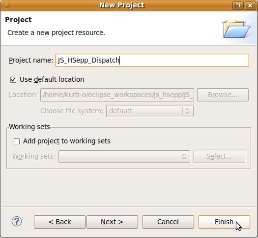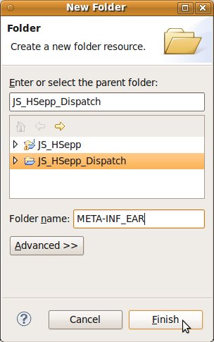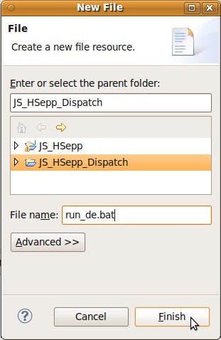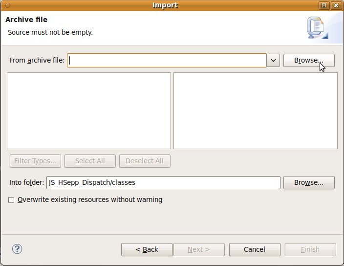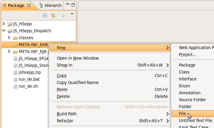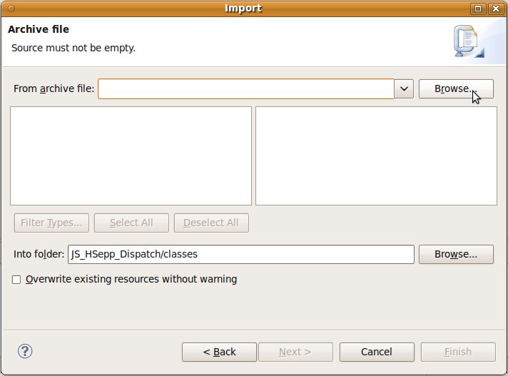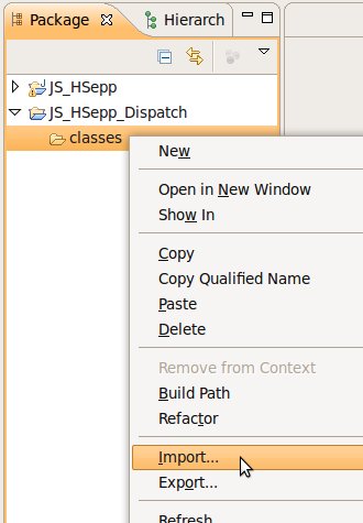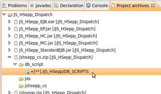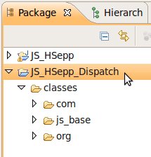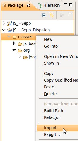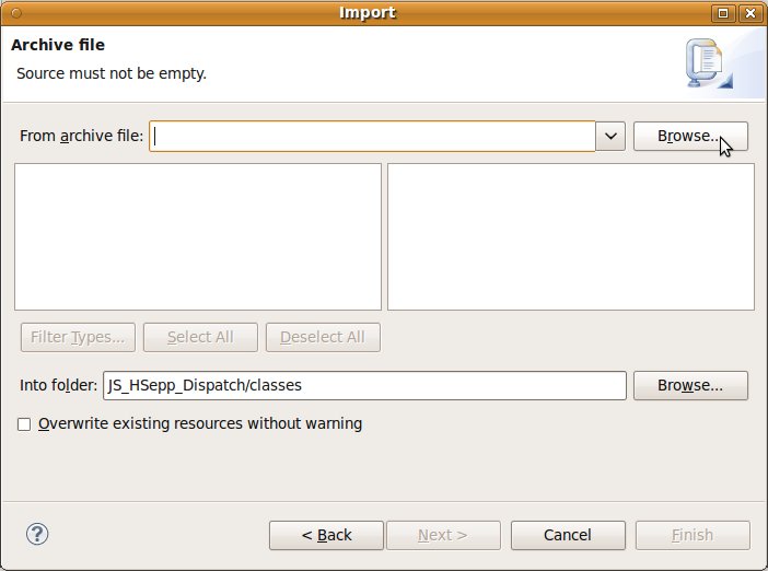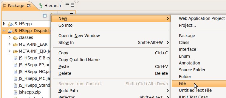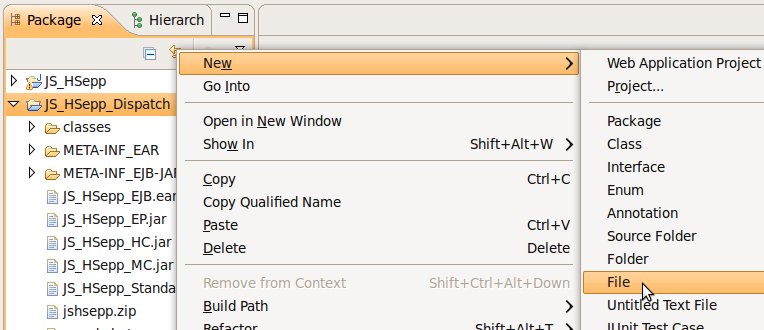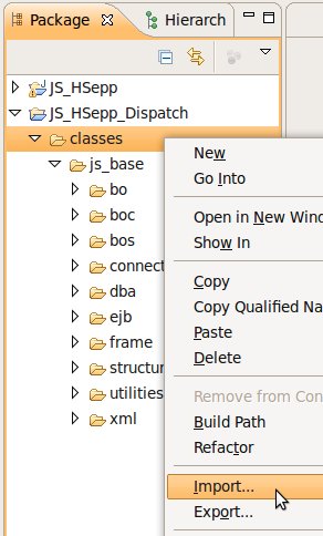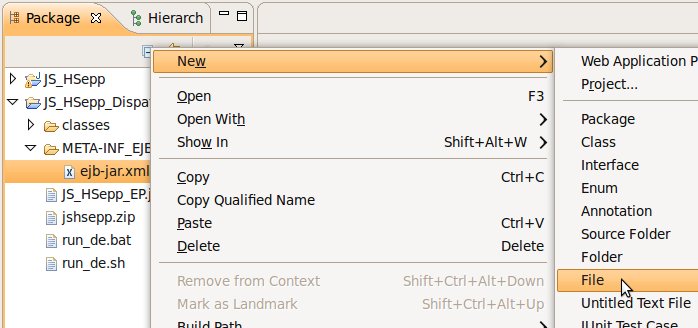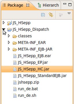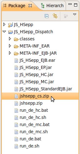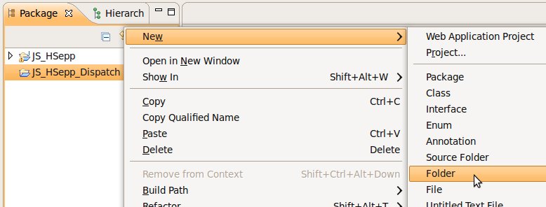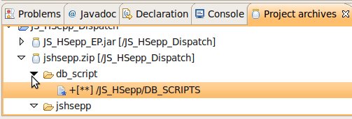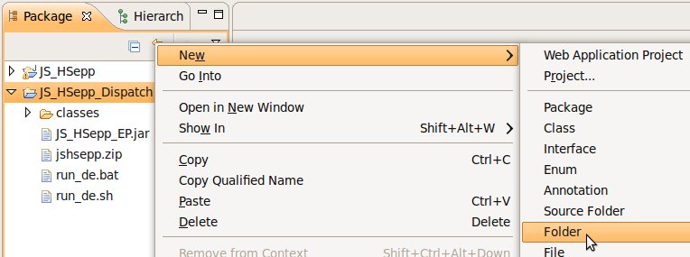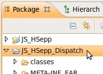 Wählen Sie das Project (im Beispiel: 'JS_HSepp_Dispatch') mit der linken Maustaste aus. Im Bereich 'Project archives' klicken Sie den Eintrag für das Project mit der rechten Maustaste an und wählen Sie aus dem Kontext-Menu New Archive > JAR aus. |