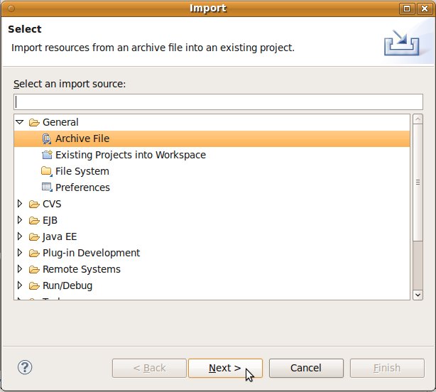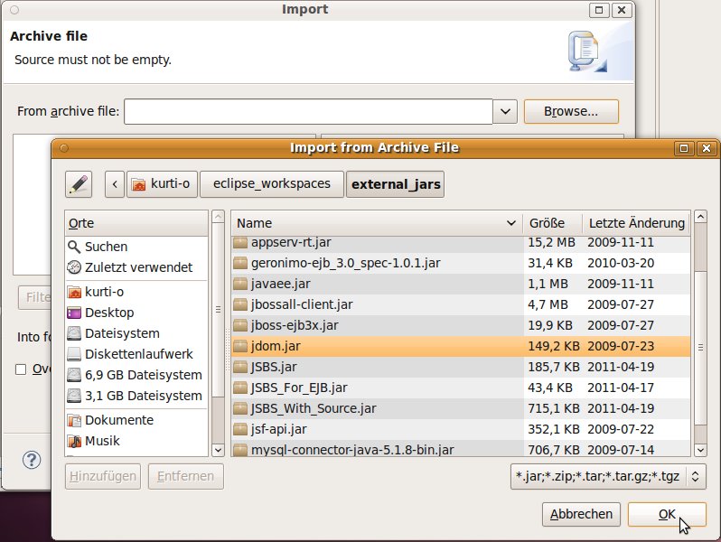 der notwendigen Java-Klassen aus den externen