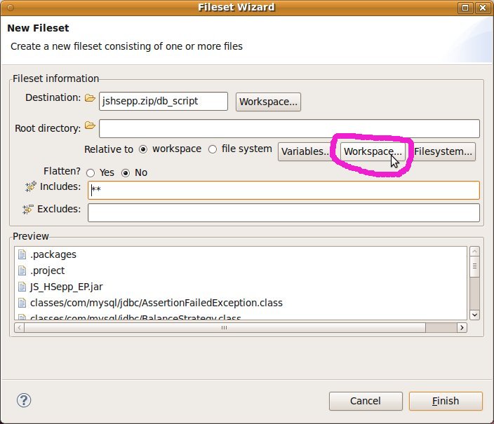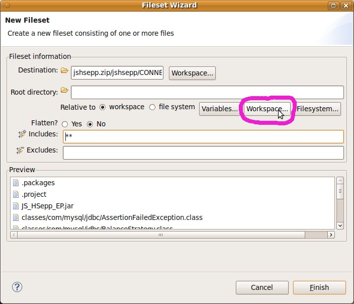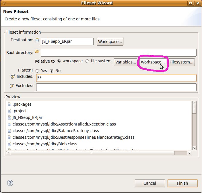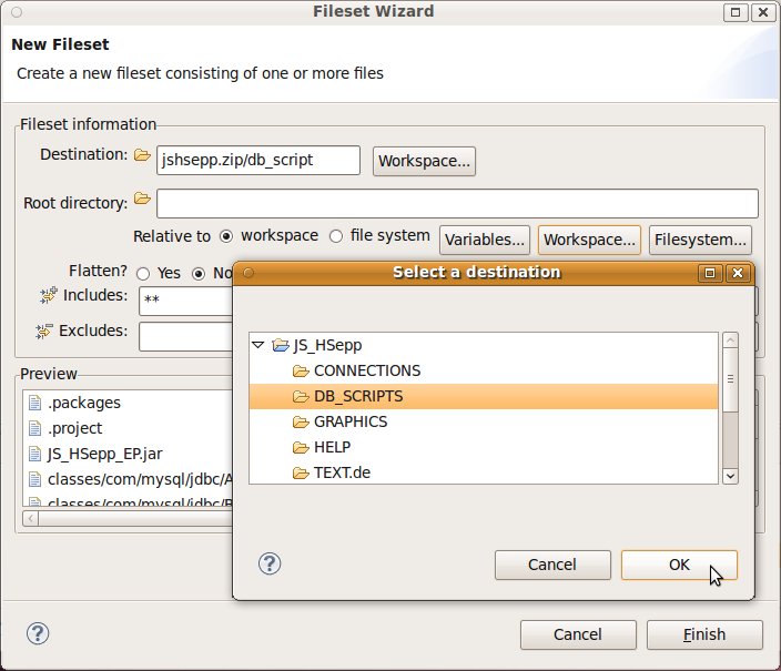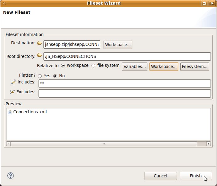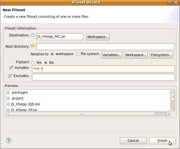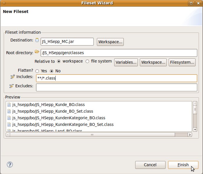 Fileset mit der JAR-Datei des Client-Programms und mit den Script-Dateien innerhalb des Verzeichnisses für den MobileClient definieren