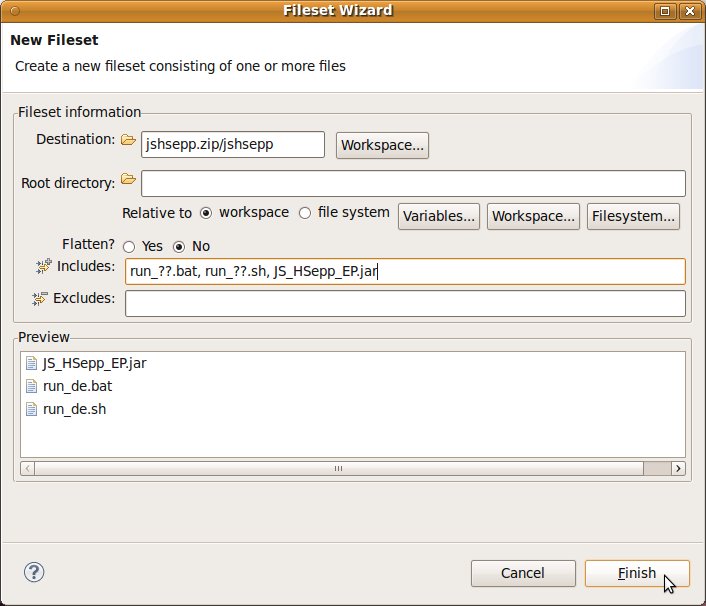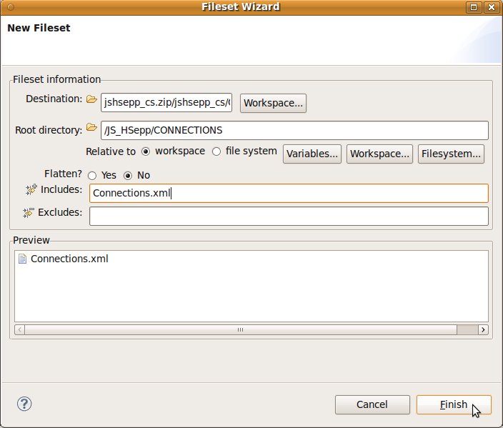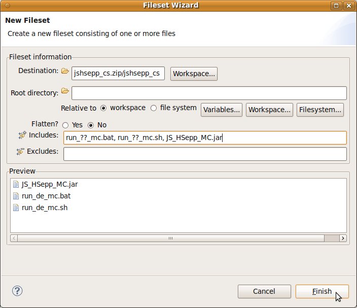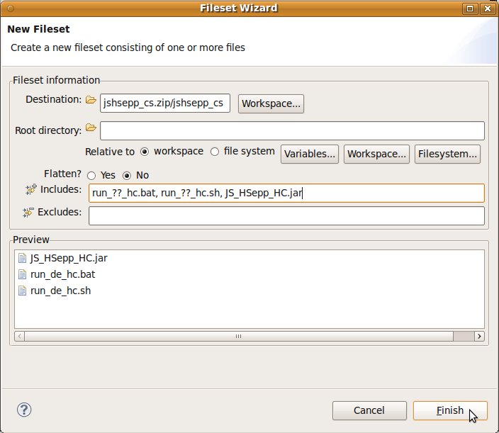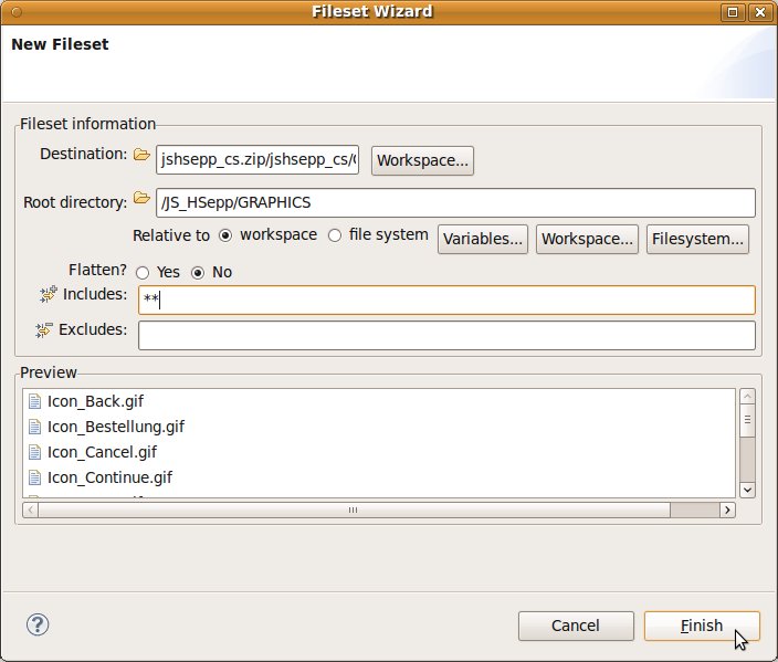 'Auslieferungs'-Dateien ein kurzer Name sinnvoll ist. Sie können selbstverständlich einen beliebigen Namen für die Datei verwenden – vergessen Sie aber bitte nicht, dass die Endung '.zip' sein muss. Lassen Sie alle anderen Vorgaben unverändert und bestätigen Sie die Eingaben durch Anklicken der Schaltfläche [ Finish ] mit der linken Maustaste. |