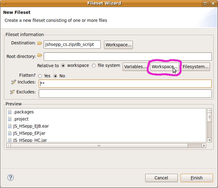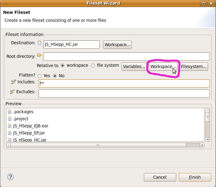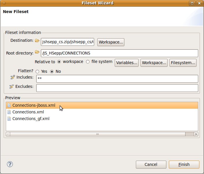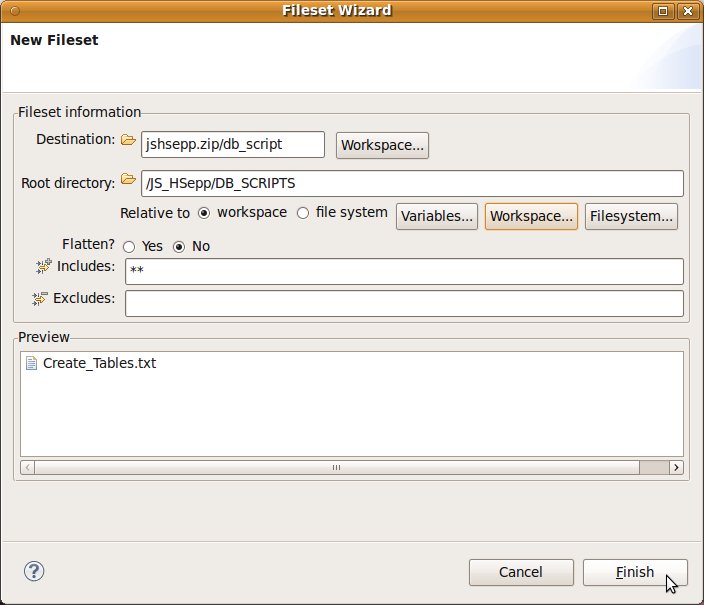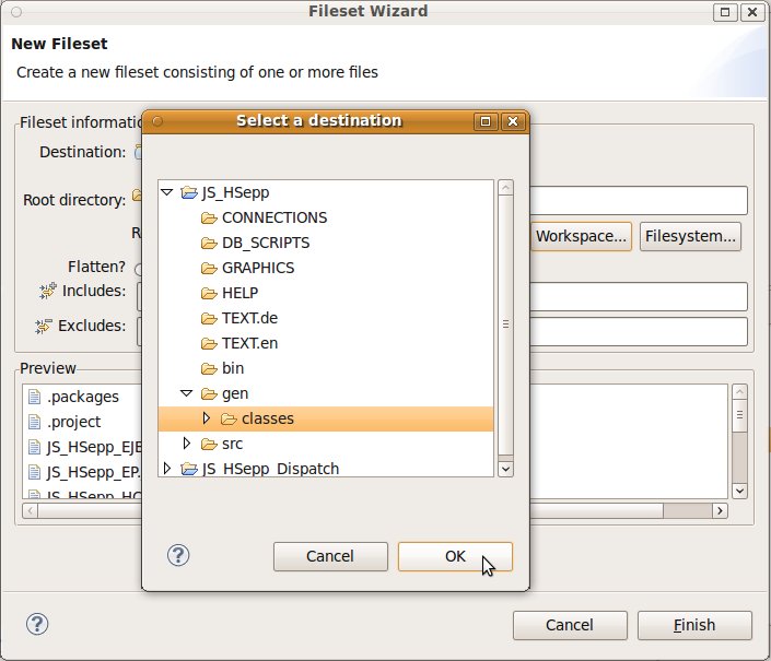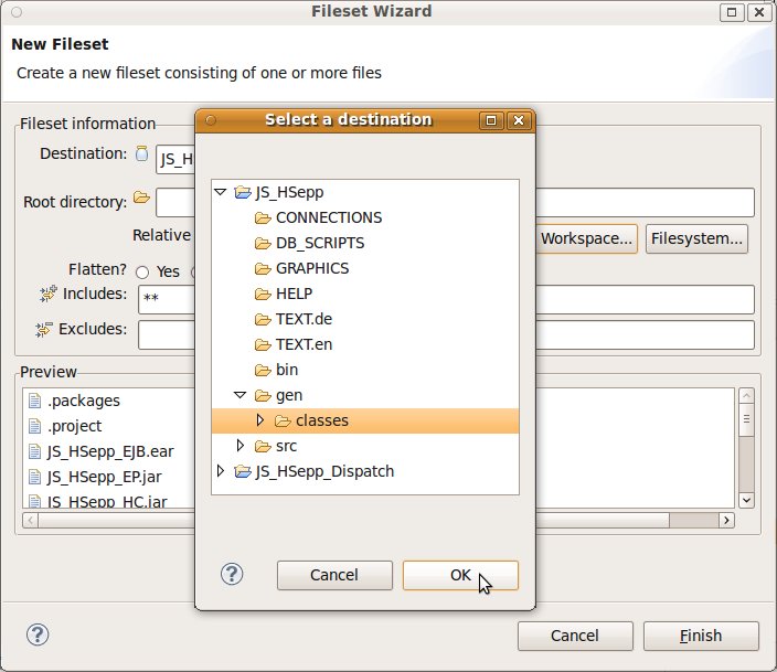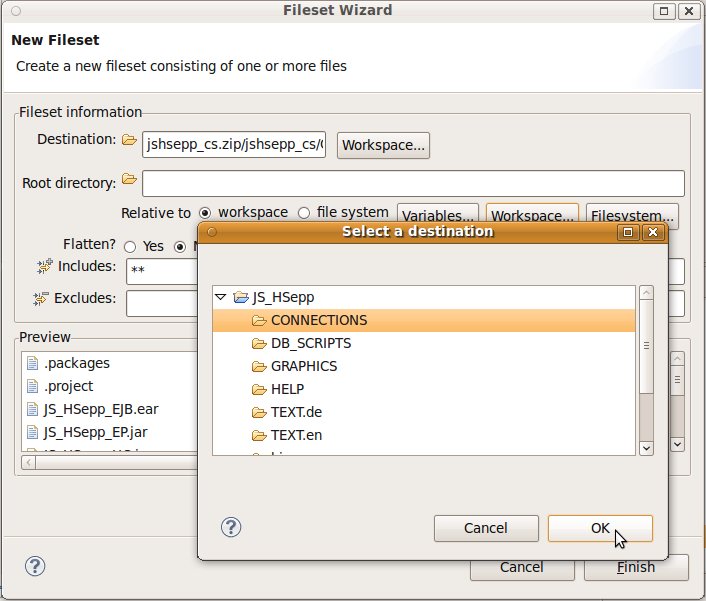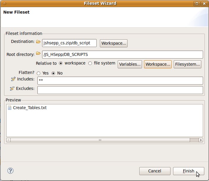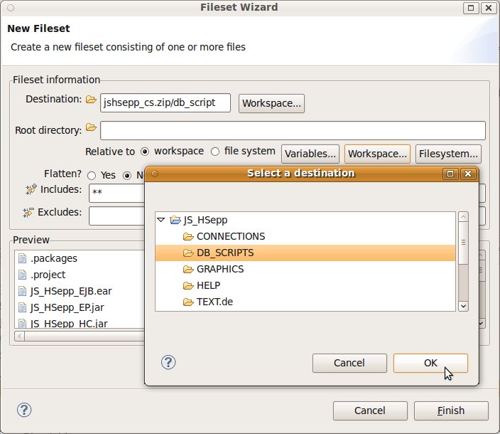 Fileset mit der JAR-Datei des Client-Programms und mit den Script-Dateien innerhalb des Verzeichnisses für den Heavyweight-Client definieren