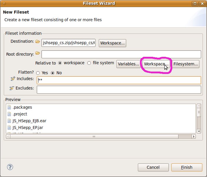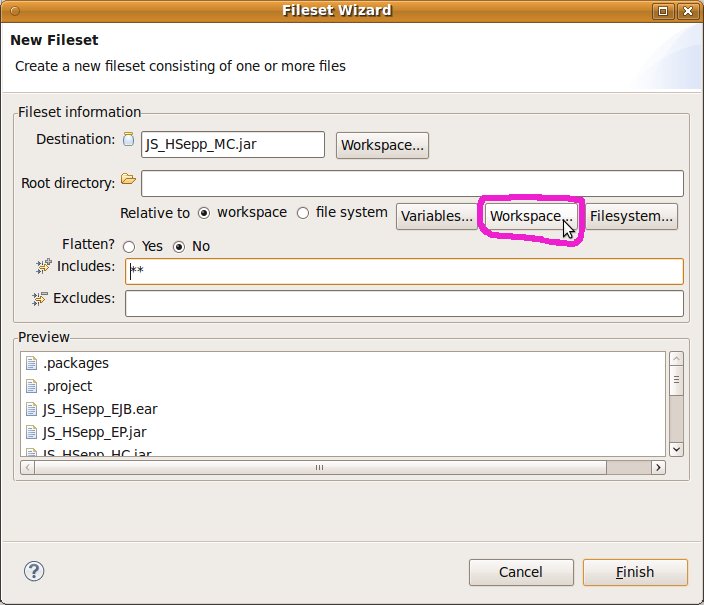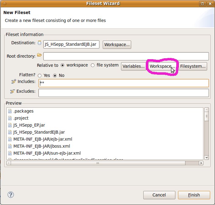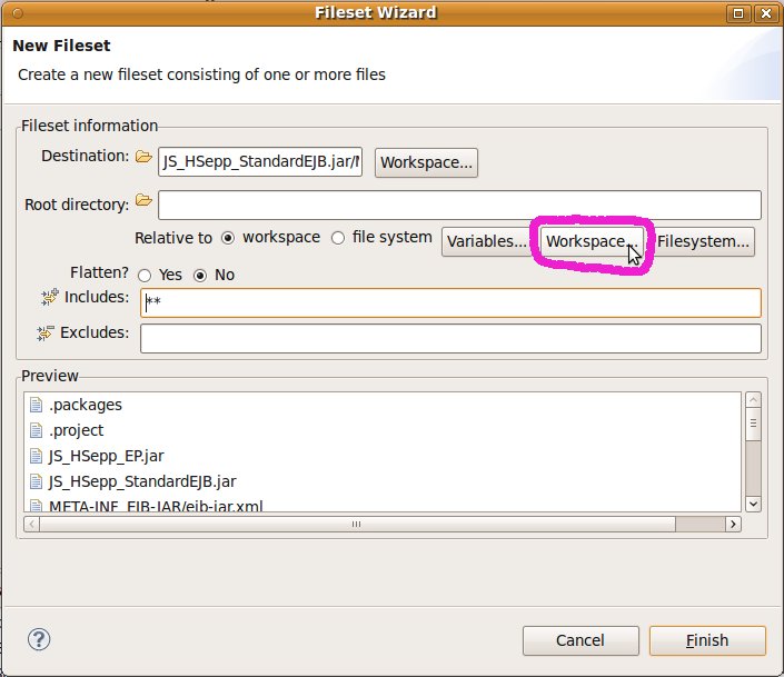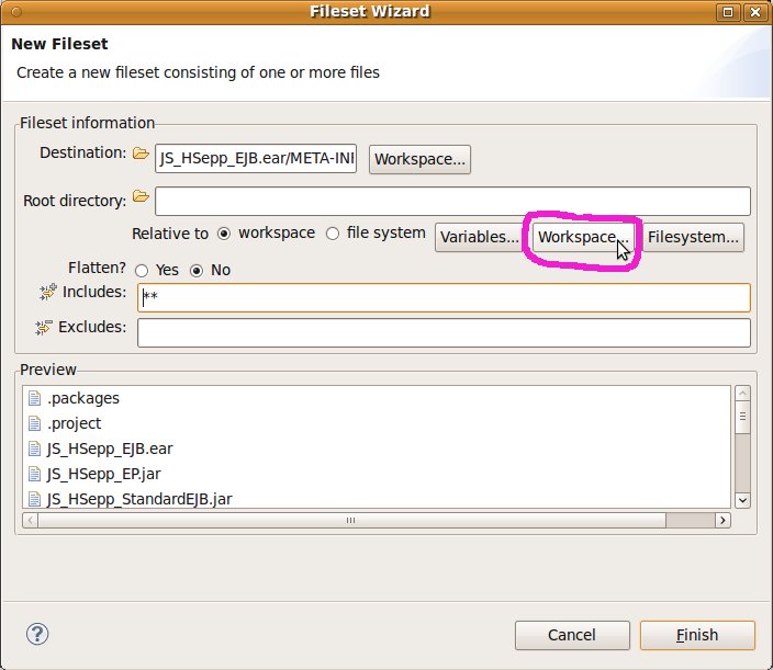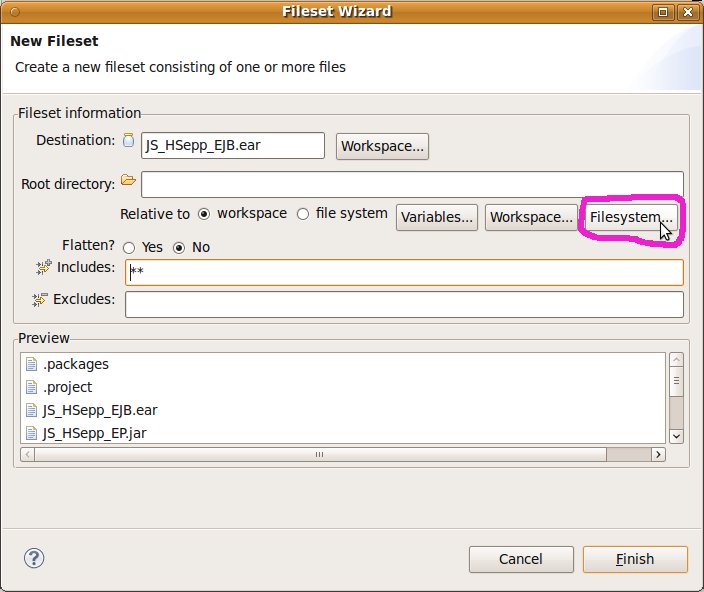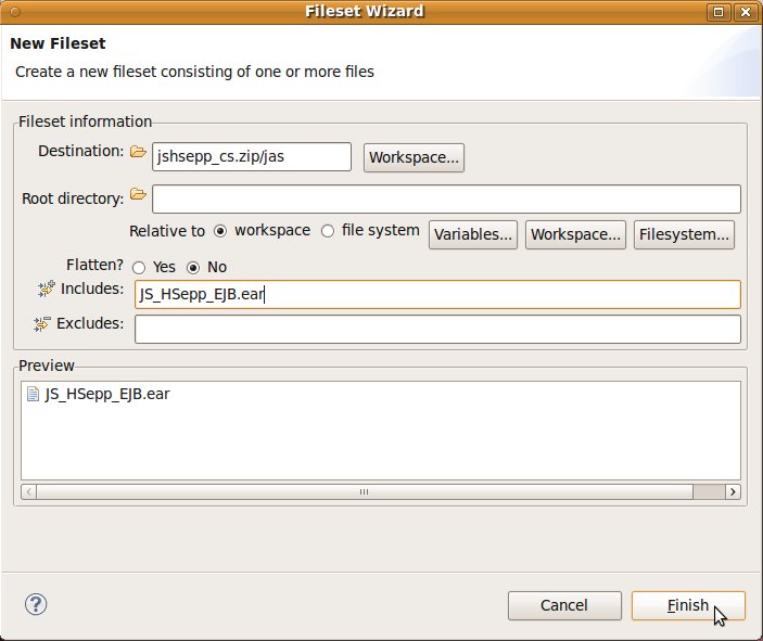 Fileset mit der EAR-Datei des EJB innerhalb des Verzeichnisses für den JAS definieren