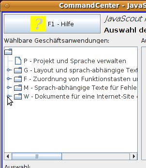 Anleitungen für das Erstellen eines Start-Frames (CommandCenter) für Ihr individuelles Anwendungsprogramm finden Sie unter Leitfaden für die Entwicklung von Heavyweight-Clients mit dem JS-FCF – Alle Schritte zur Entwicklung des Start-Frames.