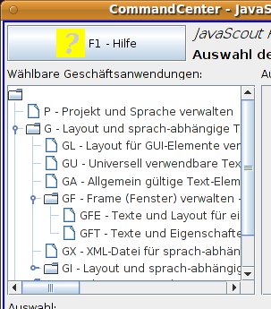 Die XML-Struktur wird in der Basisklasse JSBS_StartFrame ausgelesen und damit wird ein Auswahl-Baum für das Start-Frame (CommandCenter) eines Anwendungsprogramms gebildet.