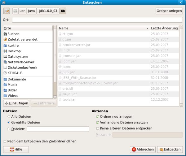 'externes Archiv' wird die Datei mit den Klassen, die die Verbindung