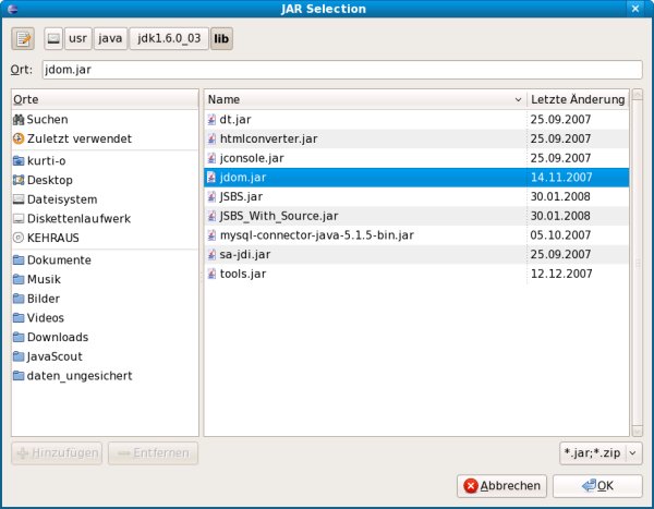 diesem Schritt wird auch erstmals eine Bibliotheks-Datei ('jdom.jar'