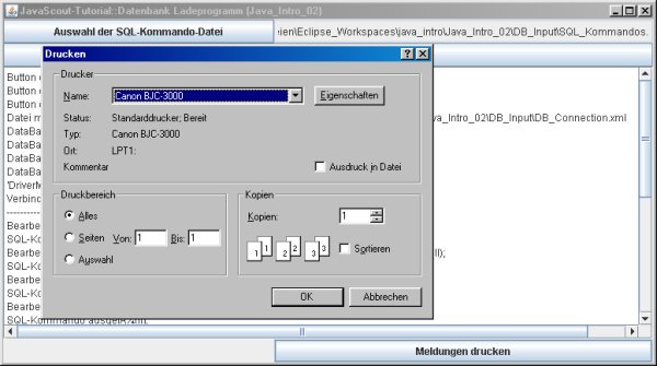 Dabei werden Befehle verwendet, die bereits in Java 1.1 implementiert sind. Bei diesen ist leicht zu erfassen, wie ein Drucker ausgewählt wird, die zu druckende 'Grafik' für jede Seite erstellt wird und diese Grafik(en) an den Drucker 'gesandt' werden.