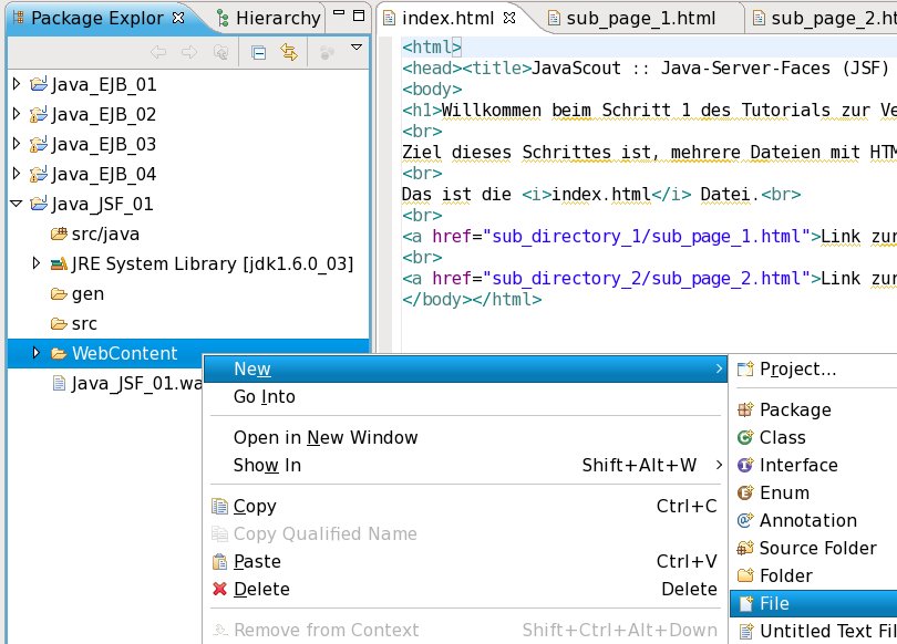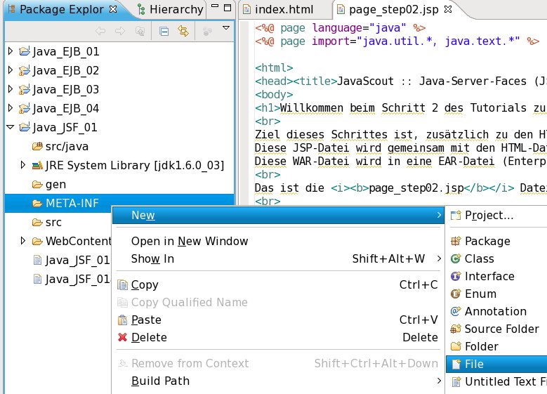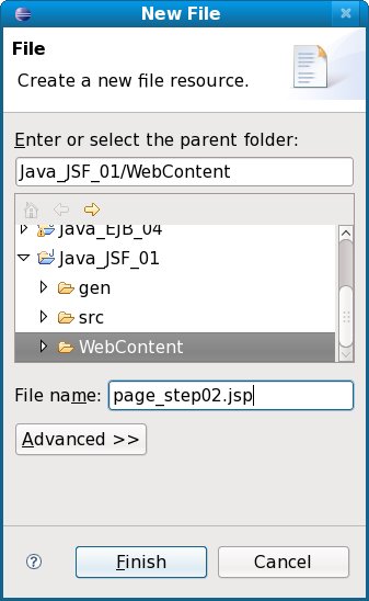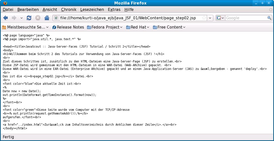 Die zu erstellende Datei hat den Namen page_step02.jsp. und ist im gleichen Verzeichnis wie die Datei 'index.html'.