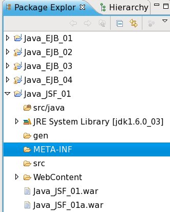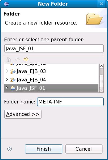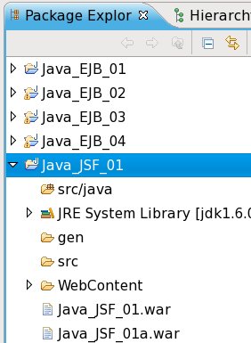 enthalten sind. Das Auswählen des Datei-Verzeichnisses erfolgte im vorigen Schritt (Tutorial: Einfache Benutzeroberfläche mit JSF und Aufruf von Methoden eines EJB (Java_JSF_01) – Erstellen von HTML-Dateien und Packen in ein WAR (Web-Archive) > Project in Eclipse eröffnen). |