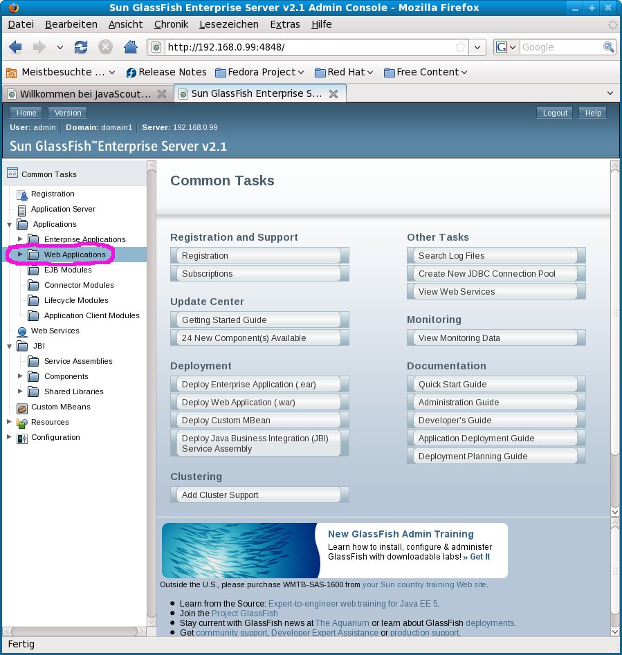 Voriger Schritt des Tutorials (Erstellen von HTML-Dateien und Packen in ein WAR (Web-ARchive)) erfolgreich abgeschlossen.