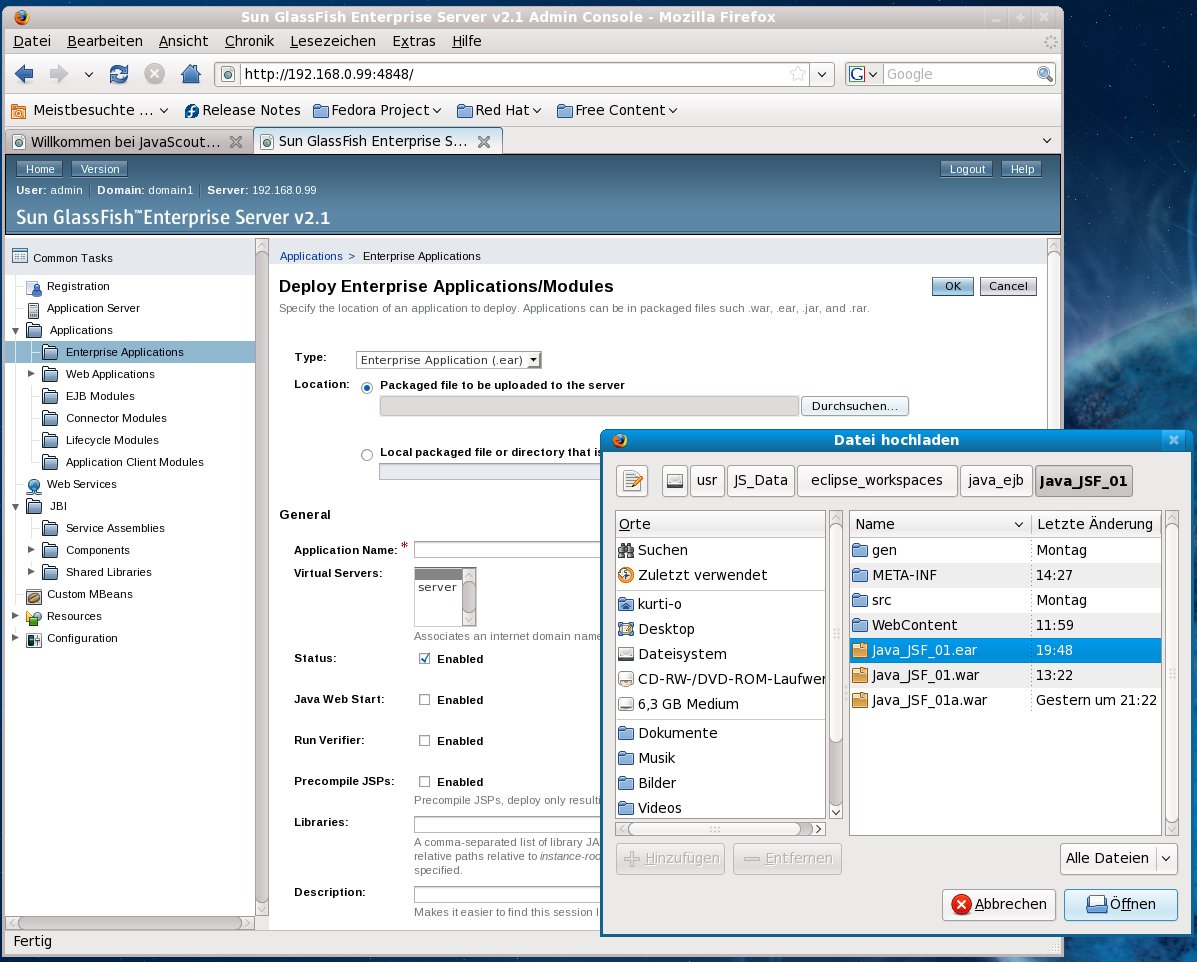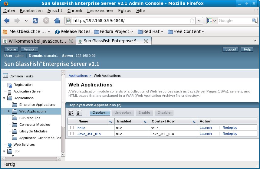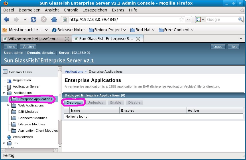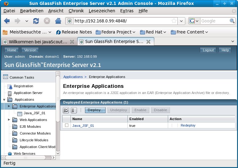 'Deploy' der EAR-Datei im JBoss Java-Application-Server (JAS) und prüfen ob die HTML-Dokumente aufgerufen werden können.