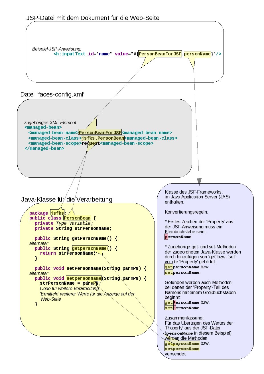 In JSF bestehen sehr strikte Namenskonventionen für die 'Properties' in einer Web-Seite und den zugehörigen get- und set-Methoden. [Detailbeschreibung] |