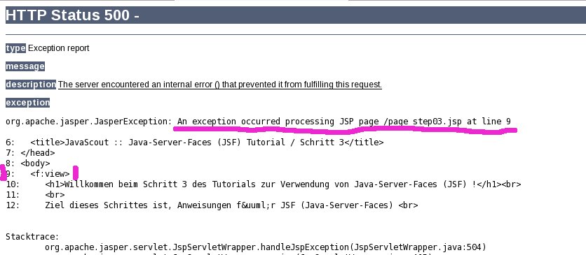 JSF-Anweisungen bei den JSP-Dateien ein Fehler auftreten.