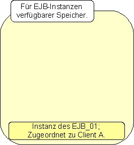 Wenn die Ausführung der von Client A aufgerufenen Methoden beendet ist wird die Zuordnung des Client A zur Instanz der EJB-Klasse durch den Code im Client-Programm gelöst. Auch wenn die Instanz der EJB-Klasse mit keinem anderen Client mehr verbunden wäre würde der JAS die Instanz im Speicher belassen – solange freier Speicher vorhanden ist. |