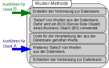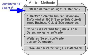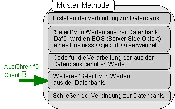 Für Client A wird innerhalb der Methode das zweite 'Select' auf die Datenbank ausgeführt. Zu dieser Zeit ruft Client B die Methode auf. |